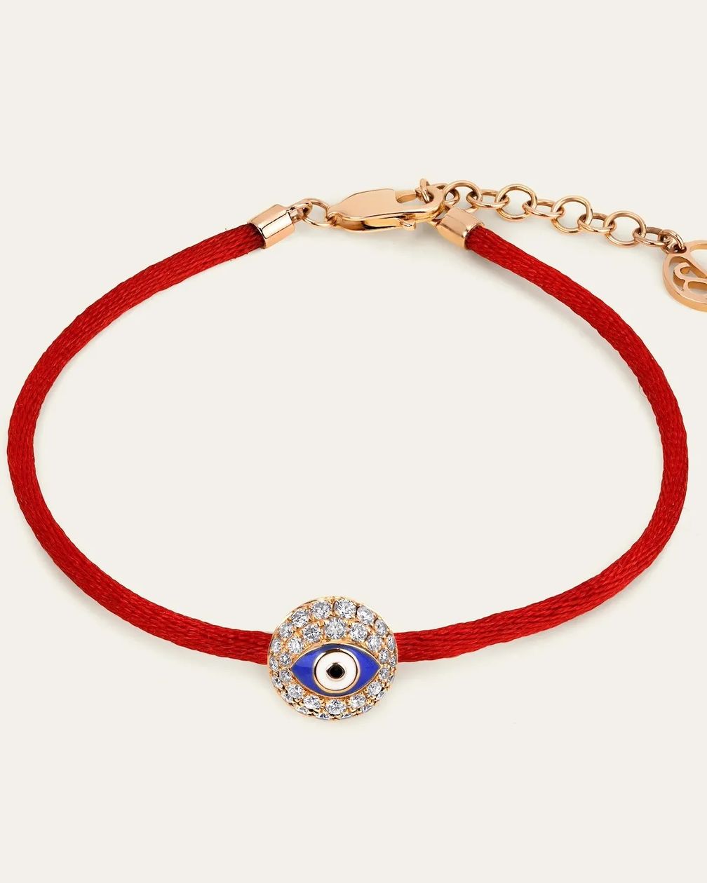 Эти бриллиантовые браслеты с амулетом от сглаза от Jacob & Co. служат символами защиты и дружбы. Красный шнурок и синяя эмаль придают браслетам нотку ностальгии.