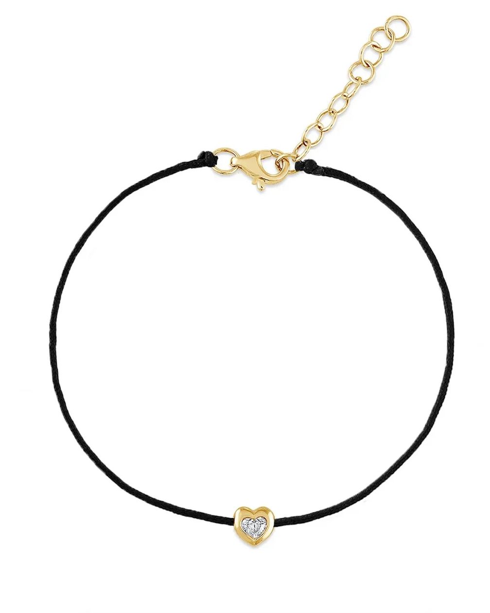 Браслет I Am от Stephanie Gottlieb украшен бриллиантовым сердечком на цветном шнурке на ваш выбор: красном, черном, темно-синем или лавандовом.