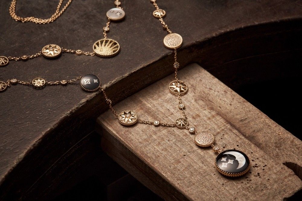 Для поклонников астрологии и мистики линия Rose Celeste от Dior — это мечта. Впервые представленная в 2018 году, она опирается на давнее увлечение месье Диора космосом. Последние дополнения включают двустороннее ожерелье — солнце с одной стороны, луна с другой — и трансформируемые серьги, которые можно носить тремя разными способами, предлагая бесконечный потенциал для стилизации. Выдающийся дизайн — ожерелье с регулируемым крючком, который крепится к любому звену цепи, что позволяет носить его длинным, коротким или даже как пояс.