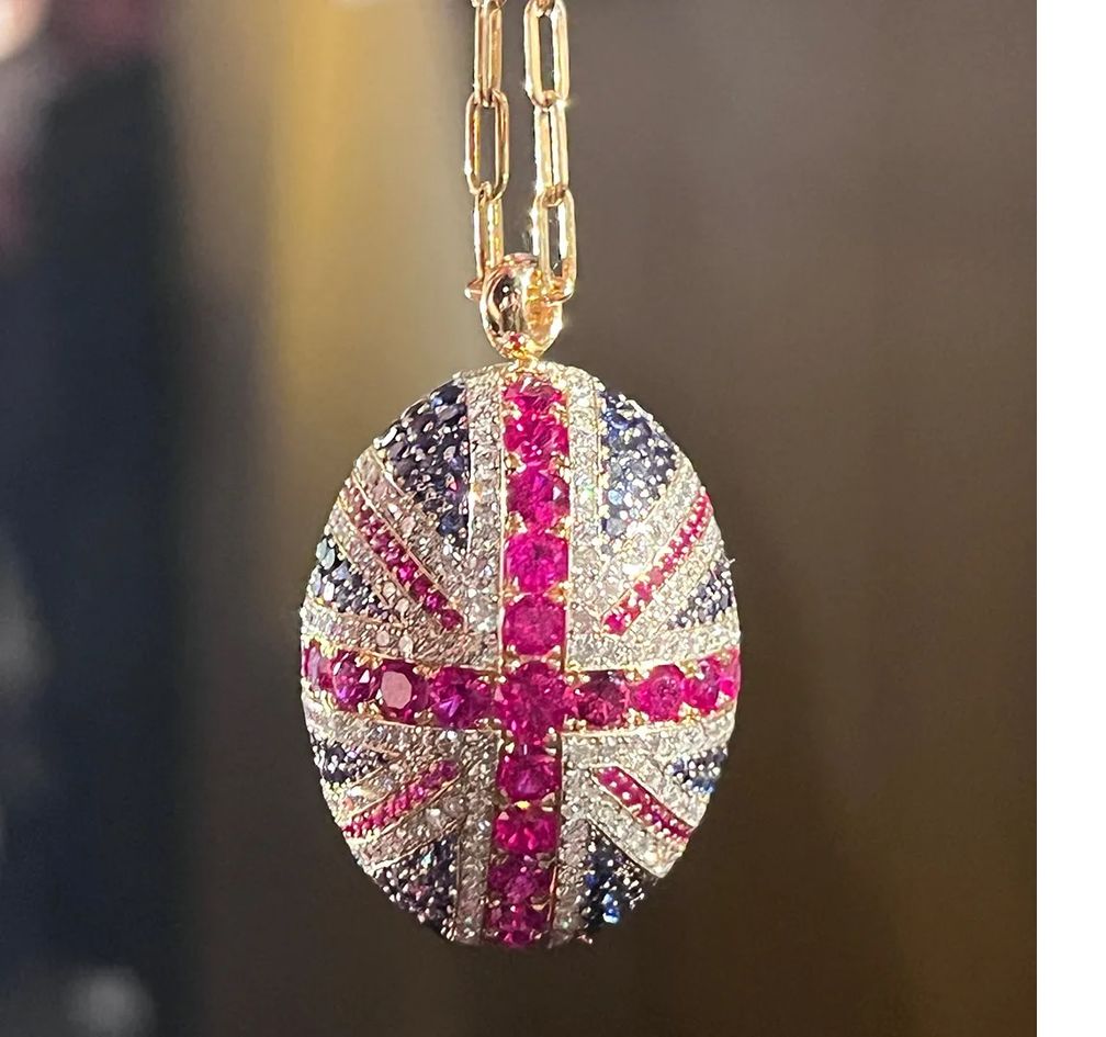 В честь британской столицы компания Taffin представила подвеску Union Jack с природными бриллиантами, рубинами и сапфирами, выполненную из 18-каратного желтого и белого золота.