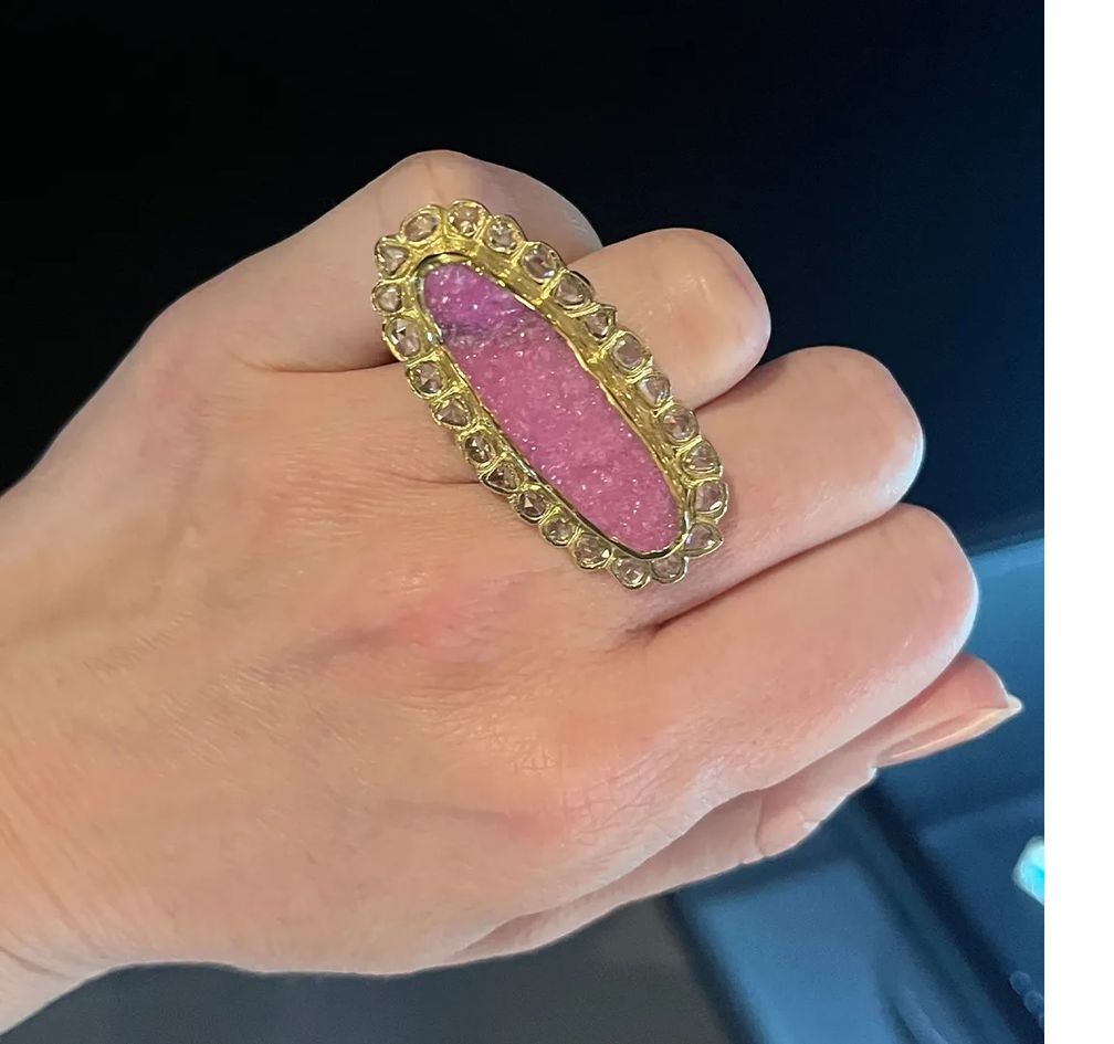В качестве талисмана, напоминающего о силе характера, компания Cultus Artem совместно с лондонской галереей Objet d’Emotion представила кольцо Pink Crush Aphrodite с необычным использованием природных бриллиантов polki, окружающих центральный камень кобальтокальцит «горячего» розового цвета.