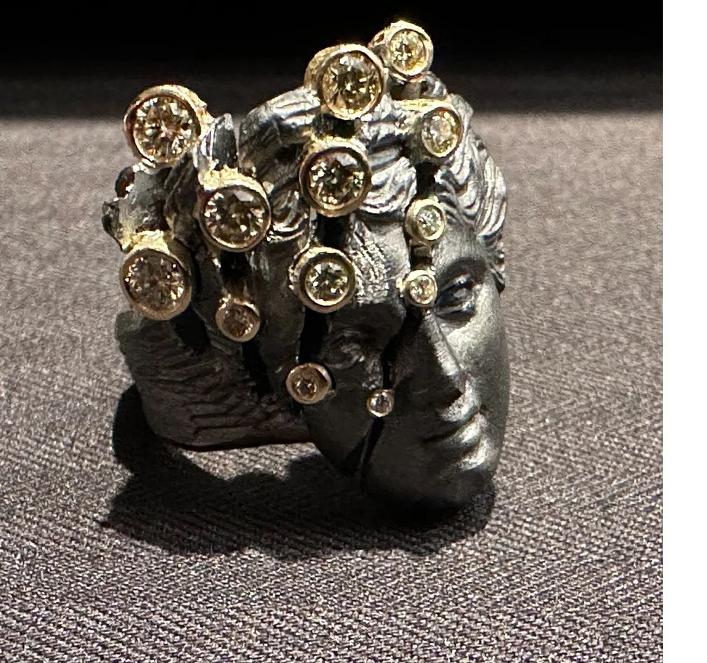 Ювелирные изделия Joy BC, глубоко уходящие корнями в мифологию и вызывающие сильные эмоции, представлены на выставке Elisabetta Cipriani Wearable Art. Кольцо Dismantle (с бриллиантами) – это деконструкция классических идеалов, где природные желтые бриллианты украшены переработанным 18-каратным желтым золотом, черным родием и переработанным серебром 925 пробы.