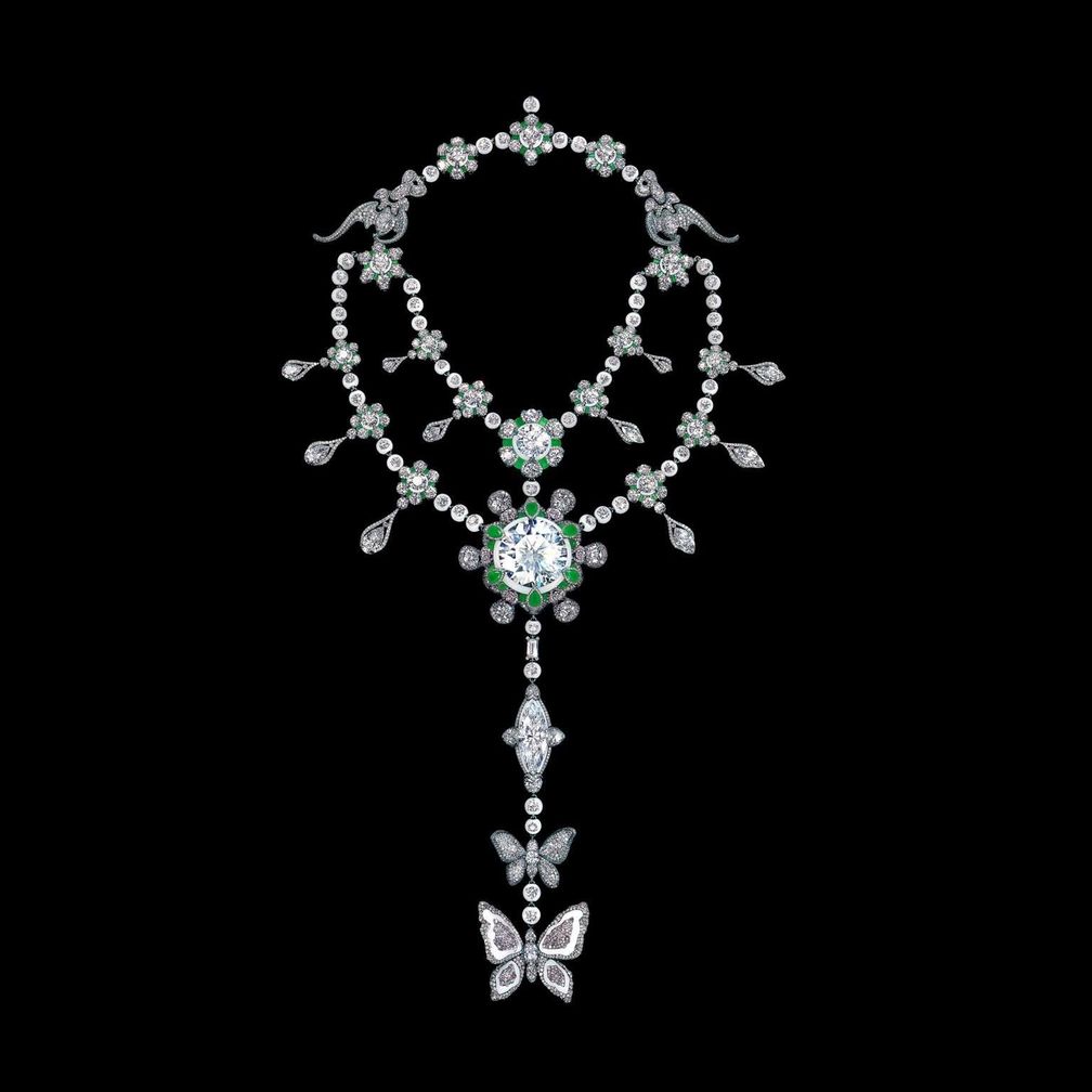 В изделии, разработанном китайским мастером Уоллесом Чаном, центральное место занимает редкий бриллиант безупречной чистоты Cullinan Heritage. Сложнейшая работа и внимание к деталям при его создании привели к тому, что на воплощение в жизнь этого необычного колье было затрачено 47 000 часов труда.