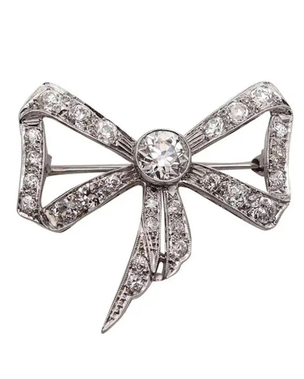 Эдвардианская брошь 1905 Belle Epoque Bow из платины с бриллиантами весом 3,35 карата: