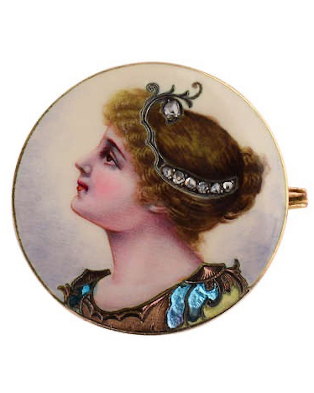 Эмалевая брошь Викторианской эпохи с бриллиантами: