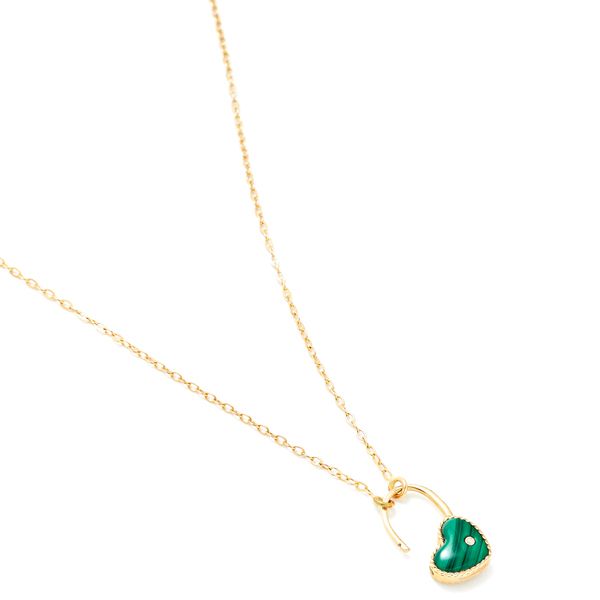 Кулон Heart padlock из 9-каратного желтого золота с малахитом и серыми бриллиантами от Yvonne Léon: