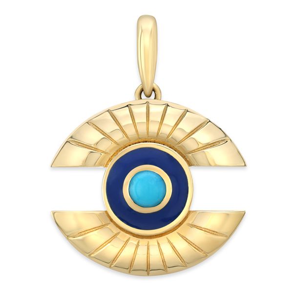 Подвеска Evil eye из 14-каратного желтого золота с синей эмалью и бирюзой от Alice Pierre: