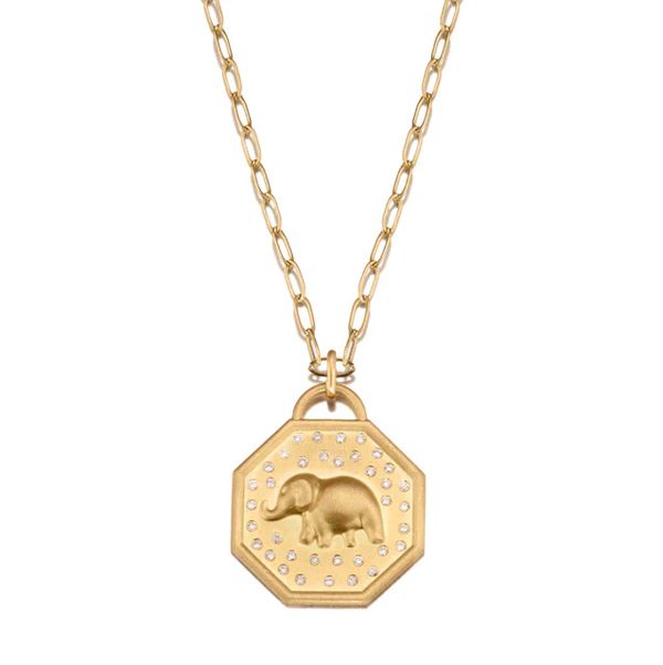 Шарм Elephant из 18-каратного желтого золота с бриллиантами от Elizabeth Moore:
