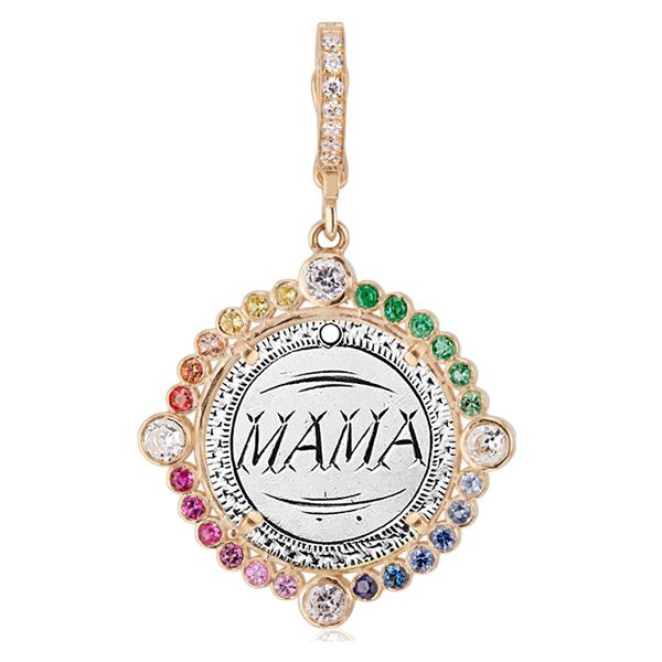 Подвеска Мama из 14-каратного желтого золота с радужными сапфирами и бриллиантами, изготовленная на заказ, от Heavenly Vices: