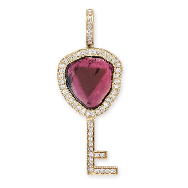 Шарм Key из 14-каратного желтого золота с розовым турмалином и бриллиантами от Jacquie Aiche: