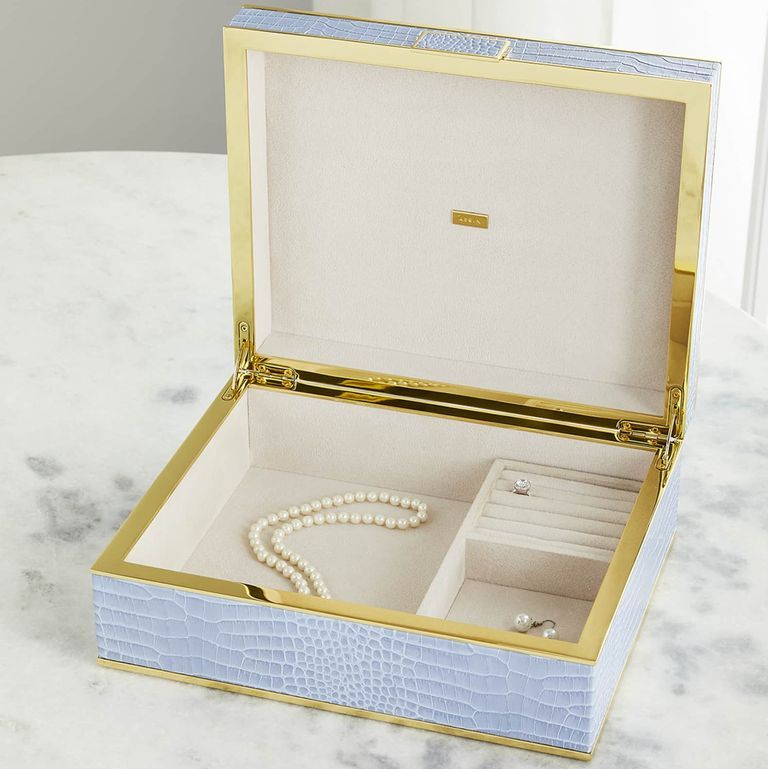 Корпус из тисненой кожи и просторное внутреннее пространство для цепочек, шармов и колец – перед вами роскошная шкатулка для украшений, столь же великолепная, как и содержимое, которое вы в нее положите.