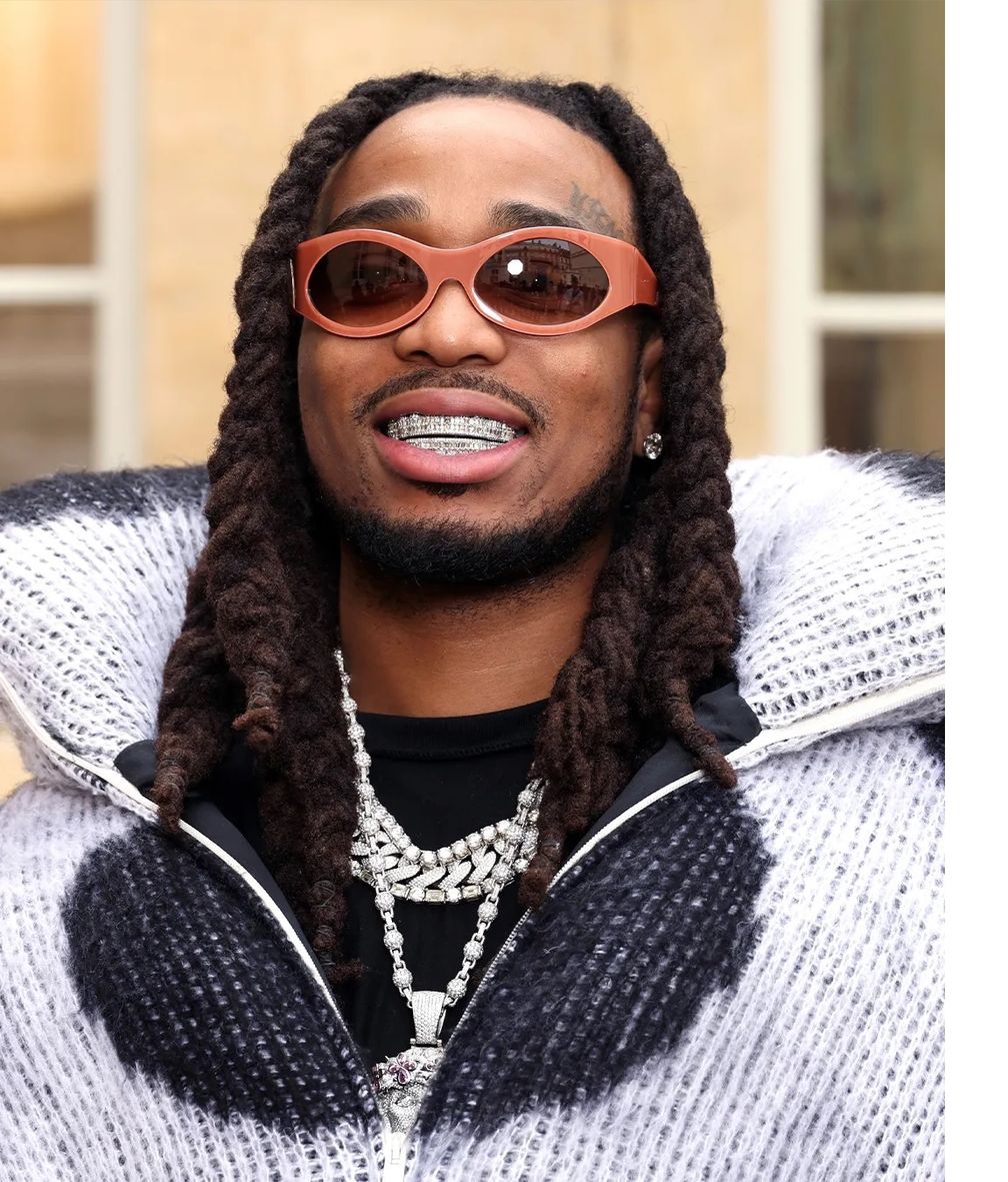 Бриллиантовые гриллзы и цепочки Quavo ярко сверкали на показе Marni в Париже.