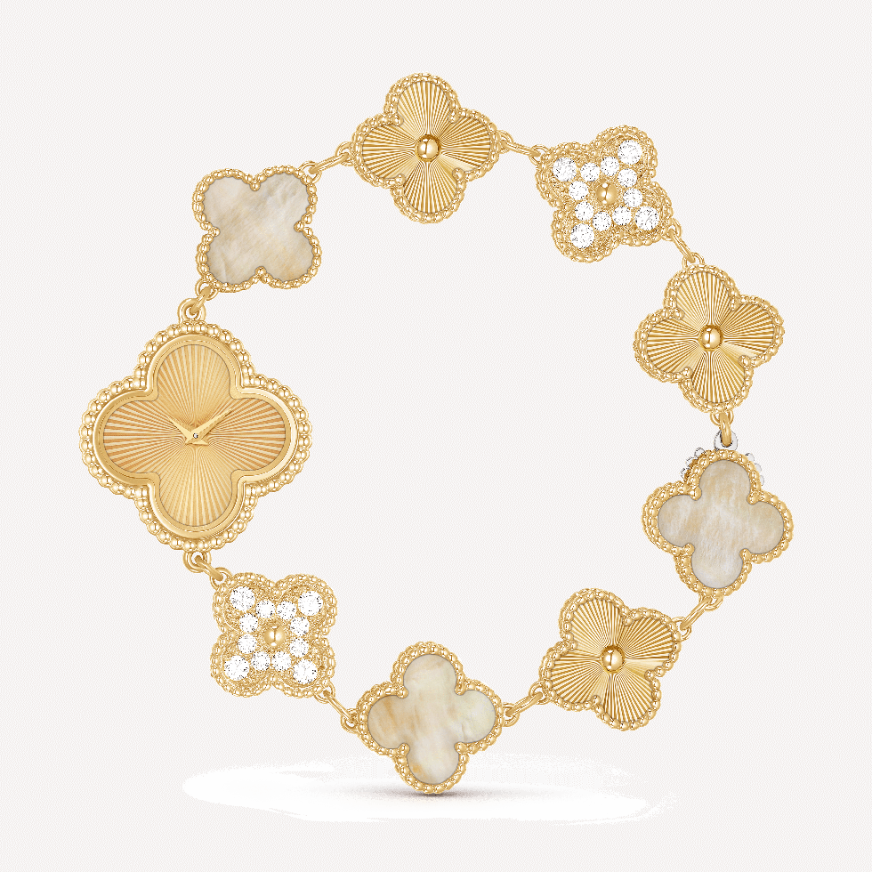 Мотив Alhambra от Van Cleef & Arpels стал желанным символом статуса с момента его изобретения в 1968 году. Эти часы – лучшее из двух миров: элегантный хронометр и потрясающее украшение в одном изделии.