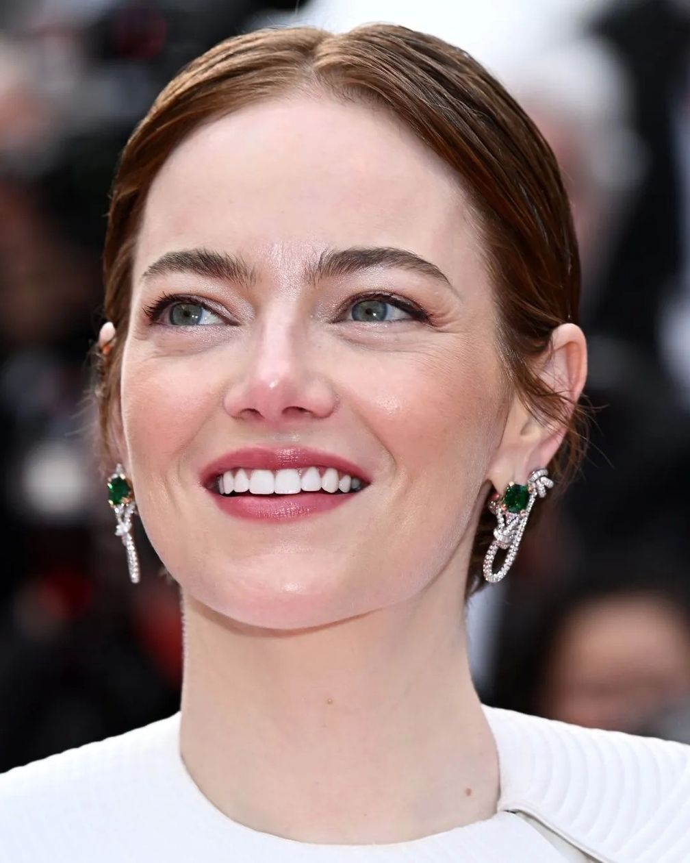 Эмма Стоун на Каннском кинофестивале с ног до головы была одета в Louis Vuitton, включая серьги с натуральными бриллиантами и изумрудами.