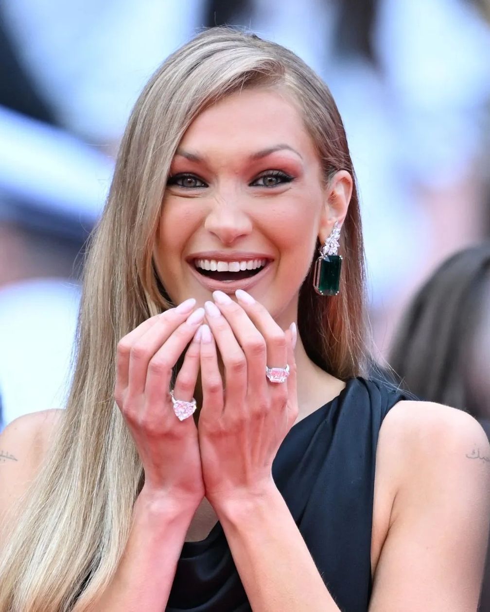 Белла Хадид посетила церемонию открытия Каннского кинофестиваля в украшениях от Chopard с натуральными бриллиантами. Ее образ включал серьги из коллекции Red Carpet с изумрудами общим весом 118,68 карата и бриллиантами 10,31 карата в оправе из 18-каратного белого золота. На ней было два кольца из белого золота из коллекции Haute Joaillerie: одно с бриллиантом в форме сердца весом 12,15 карата, а другое с бриллиантом изумрудной огранки весом 15,01 карата.