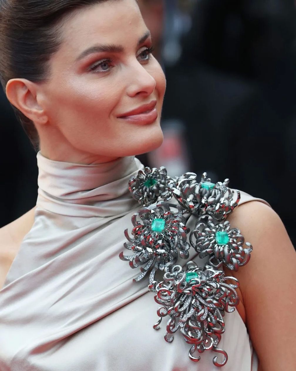 Бразильская модель Изабели Фонтана надела художественную брошь от Эльзы Джин под названием «Женщина», украшенную 240 каратами натуральных бриллиантов и пятью изумрудами общим весом почти 79 карат.