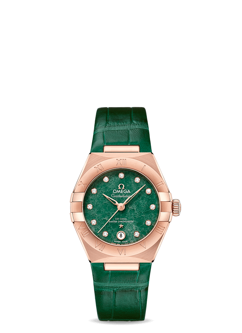 Кто сказал, что часы должны быть нейтральными? Смело выбирайте яркий циферблат в тон ремешку, как в случае с Omega Constellation.