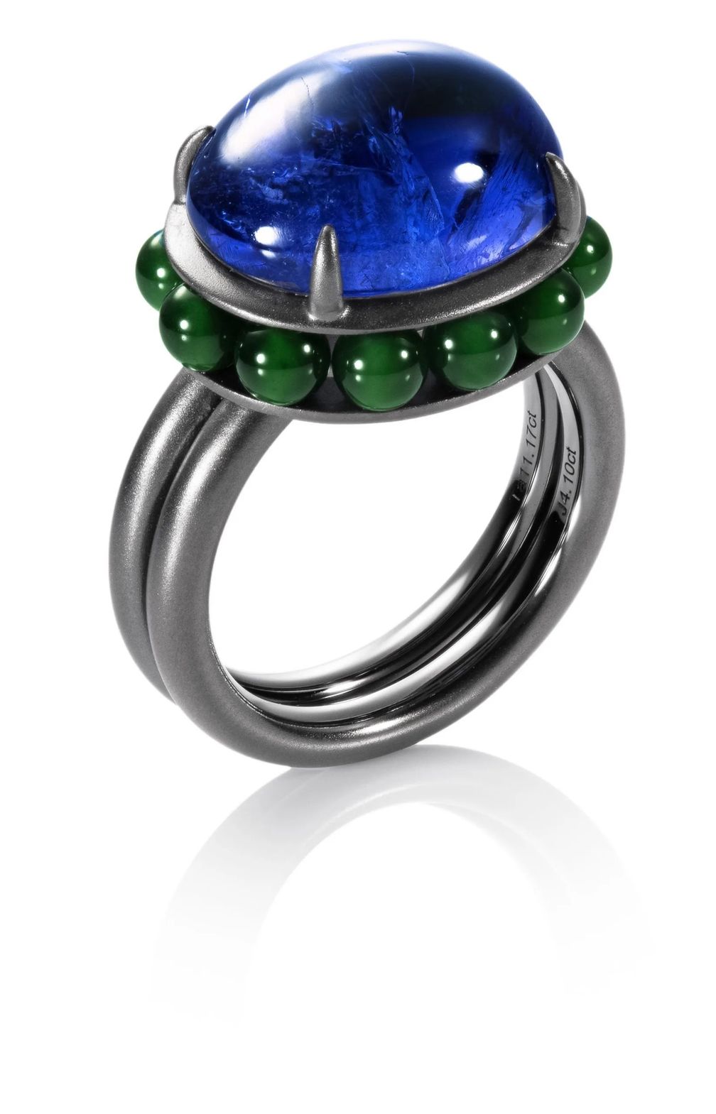 Кольцо с танзанитом и бусинами жадеита: