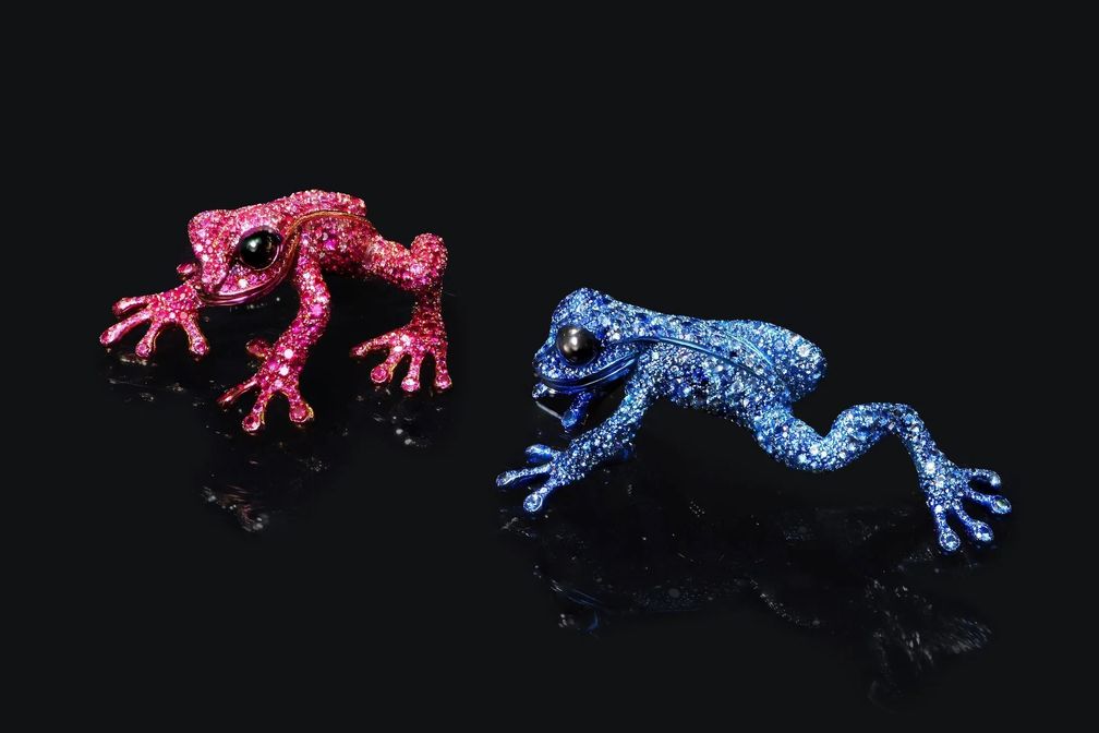 Броши Exotic Frog с рубинами (слева) и сапфирами (справа):