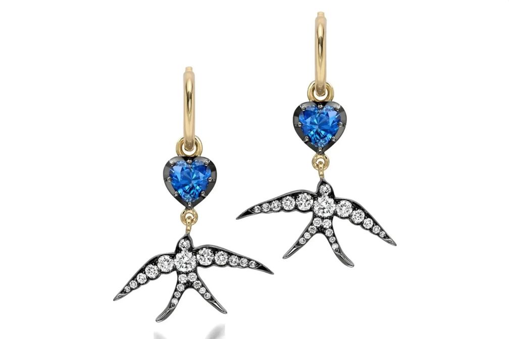 Серьги Hello Sailor Heart-Shaped Sapphire & Swallow Gypset: