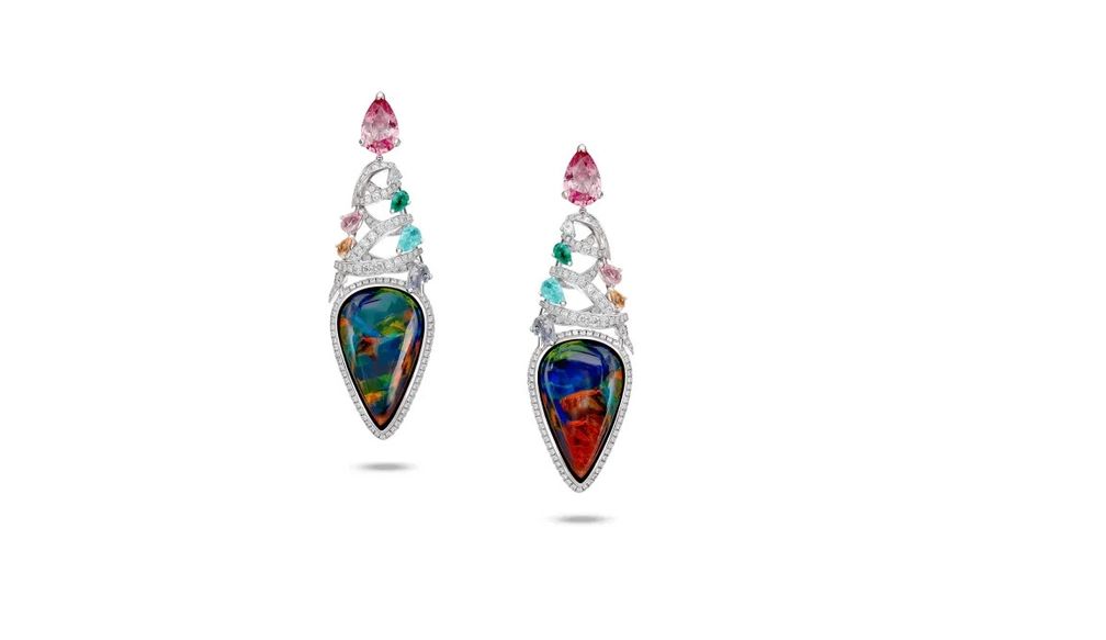 Серьги из 18-каратного белого золота с австралийским опалом и иолитом, украшенные бриллиантами pavé: