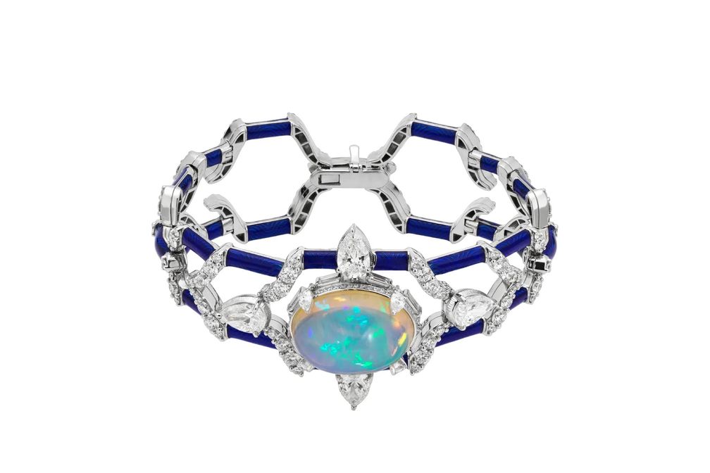 Ювелирный браслет Allegoria из 18-каратного белого золота и синей эмали с опалом и бриллиантами: