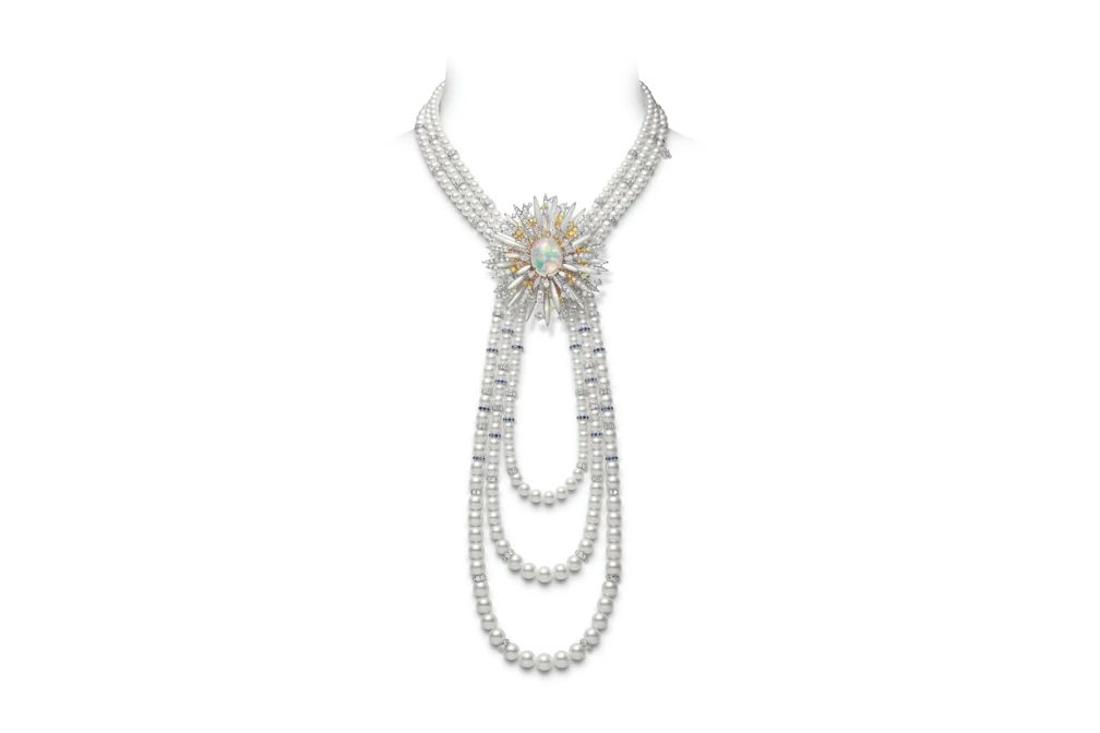 Ожерелье Praise To The Sea с культивированным жемчугом Акойя, сапфирами и бриллиантами со съемной брошью с опалом, гранатом, сапфиром, белым жемчугом Южного моря и бриллиантами: