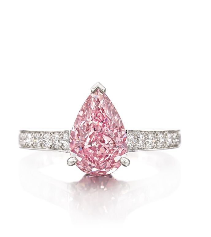 Это кольцо от Cartier с грушевидным, 2,58-каратным, фантазийного интенсивно-пурпурно-розового цвета бриллиантом VS2-чистоты было продано за 9,8 млн гонконгских долларов ($ 1,2 млн), что значительно превышает его предварительную оценку до 6,3 млн гонконгских долларов ($ 804 777).