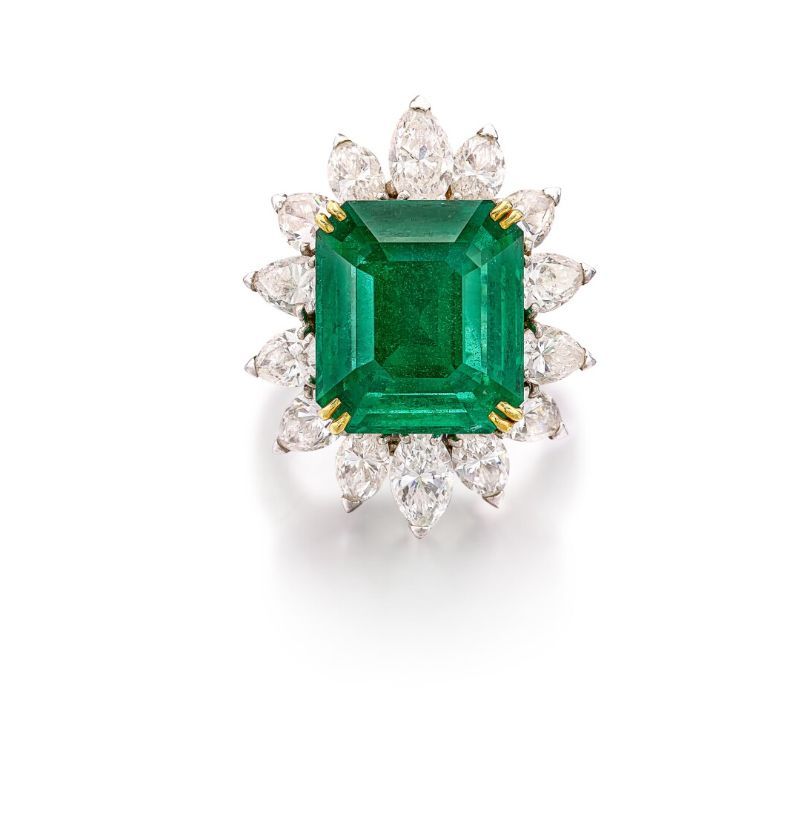 Аукционный дом Sotheby’s продал это кольцо Boucheron, в котором бриллианты в форме маркиз и грушевидной окружают колумбийский изумруд ступенчатой огранки весом 8,18 карата, за 3 млн гонконгских долларов ($ 389 359) – в ожидаемом ценовом диапазоне.