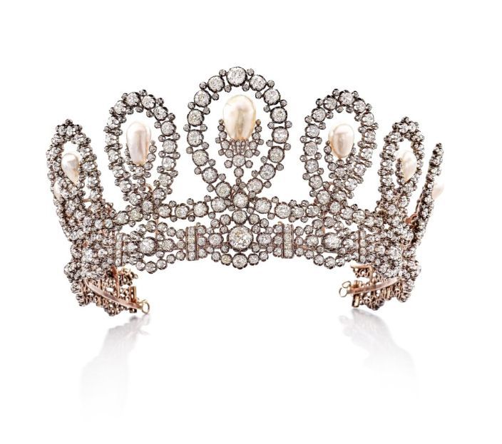 Тиара конца 19 века от дизайнера Musy, украшенная природным жемчугом и бриллиантами огранки кушон, круглой и одиночной огранок, была продана в ожидаемом ценовом диапазоне за 9 млн гонконгских долларов ($ 1,2 млн).