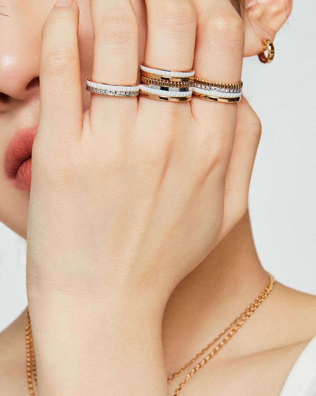 Если ваше кольцо имеет платиновую оправу, а вы положили глаз на украшения из желтого золота, добавьте к нему еще одно изделие из того же белого металла – это будет более уместно (и наоборот).