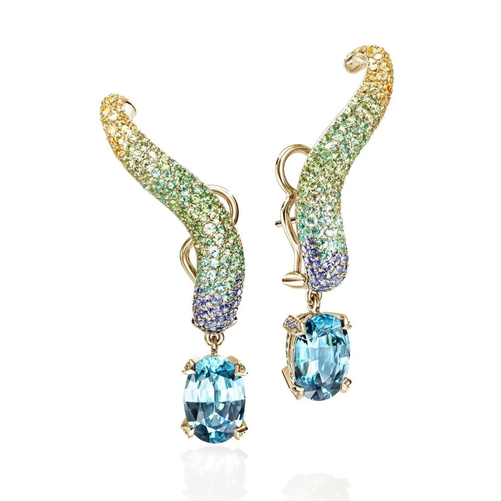 Среди ярких примеров серии Artisan Series – колье Spear Coil из 18-каратного золота и бриллиантов pavé с бриллиантовой застежкой, манжета Spear Flex и кольцо Spear. В кольце Pebble Collection используется pavé из синих сапфиров, хризолитов, изумрудов, цаворитов и желтых сапфиров для создания эффекта омбре.