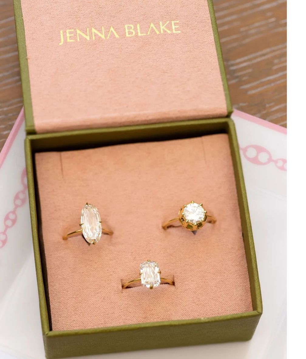Блейк известна своими ювелирными украшениями в винтажном стиле. «Мне нравится сначала узнать пару и понять, какая эстетика больше всего соответствует их стилю, –рассказала Блейк. – Как только я лучше представляю себе их видение, я начинаю разрабатывать дизайн». Но самая захватывающая часть процесса создания дизайна? «Поиск идеального камня!»