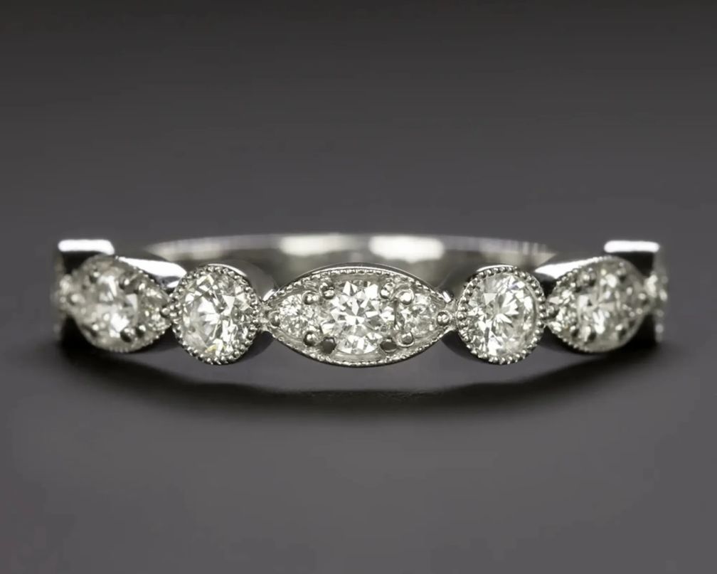 Очевидно, что бриллиантовая огранка в винтажном стиле сейчас в моде (спасибо Тейлор Свифт), и это касается и обручальных колец. Подумайте о тонкой филиграни, мелкозернистой окантовке и геометрических узорах в стиле ар-деко, которые напоминают о гламуре 1920-х и 1930-х годов.