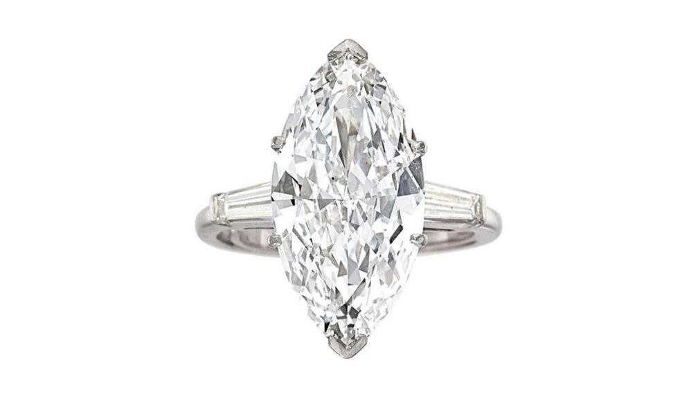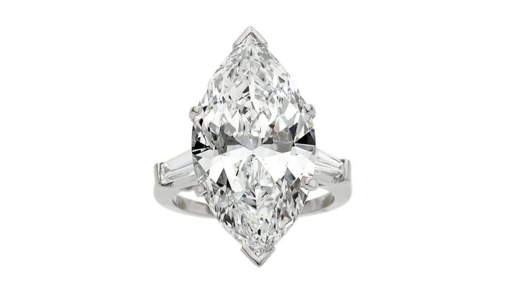 Еще одно кольцо с бриллиантом огранки маркиз весом 5,34 карата цвета D и чистоты VS2 было продано за 150 000 долларов:
