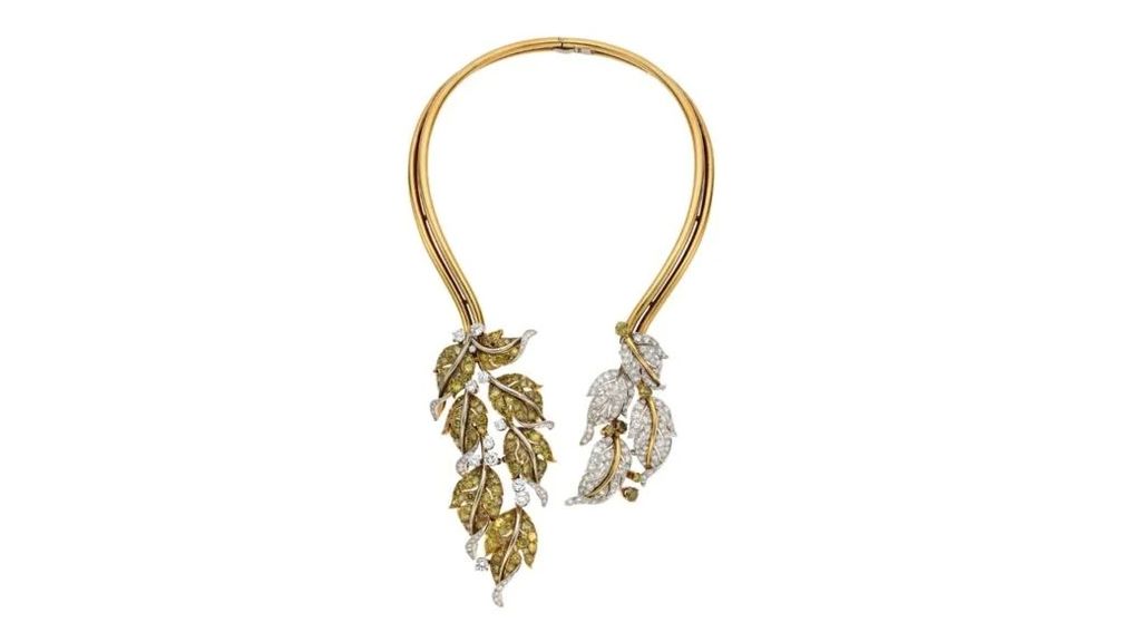 Ювелирный комплект, вдохновленный природой, от дизайнера Пола Флато, когда-то принадлежавший актрисе Ирен Данн, был продан за 275 000 долларов. Он состоит из двух скульптурных групп листьев с цветными бриллиантами одинарной огранки общим весом около 26,60 карата и почти бесцветными бриллиантами полной огранки весом около 16 карат. Изделие можно трансформировать и носить по-разному:
