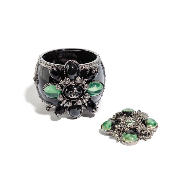 Комплект из манжеты и броши Chanel (предположительно осень 2011 года) из смолы с кабошонами и жемчугом, оценка: 1605–3210 долларов: