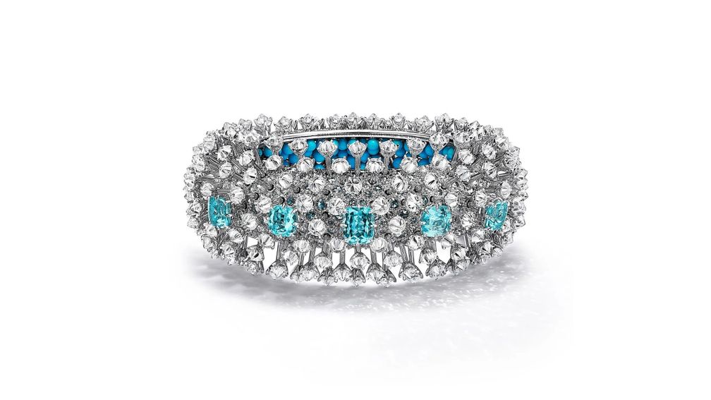 В последней коллекции Tiffany & Co. Blue Book 2023: Out of the Blue бирюзовый кабошон используется на внутренней стороне браслета Sea Anemone, символизируя воды, в которые заключен анемон. Драгоценность украшена уникальной оправой, которая позволяет бриллиантам переливаться, имитируя анемоны в их естественном состоянии.