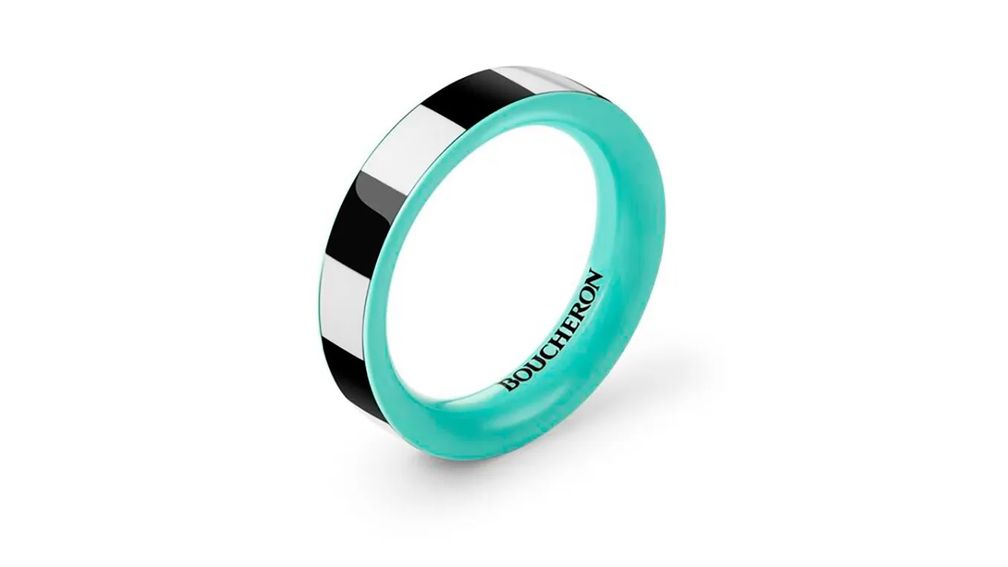 Boucheron предлагает «свободную» концепцию высокого ювелирного искусства, основанную на философии креативного директора Клэр Шуан, которая заключается в отказе от условностей. Дом представляет свежий, игривый и красочный стиль, напоминающий поп-арт. Главным украшением является титановое кольцо, напоминающее иллюстрации Роя Лихтенштейна к комиксам, выполненное из черной и белой смолы и, конечно же, бирюзы.