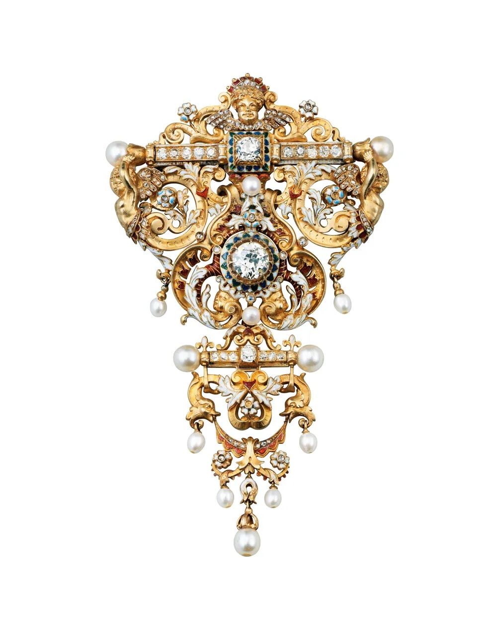 Брошь в стиле неоренессанса, созданная Теофилом фон Хансеном и некогда принадлежавшая императрице Елизавете (A. E. Köchert):