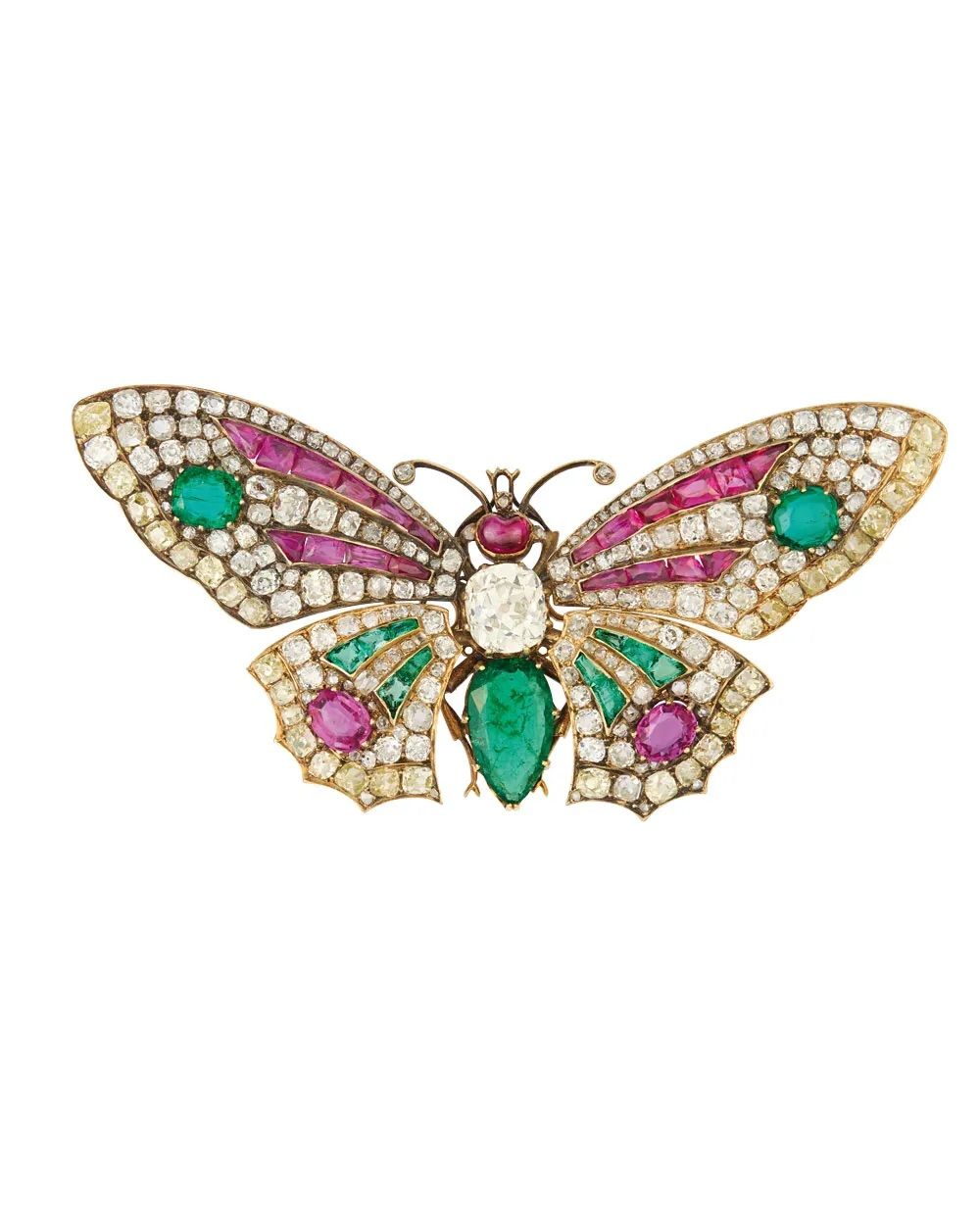 Брошь-бабочка с бриллиантами, изумрудами и рубинами, которая когда-то принадлежала эрцгерцогине Марии Валерии (A. E. Köchert):