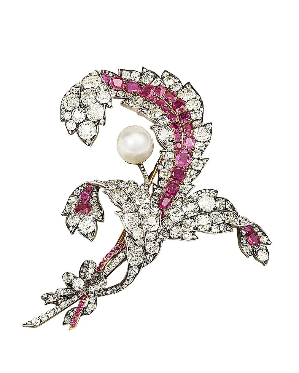 Брошь в форме пера с рубинами, бриллиантами и жемчужиной, которая когда-то принадлежала эрцгерцогине Марии Валерии (A. E. Köchert):