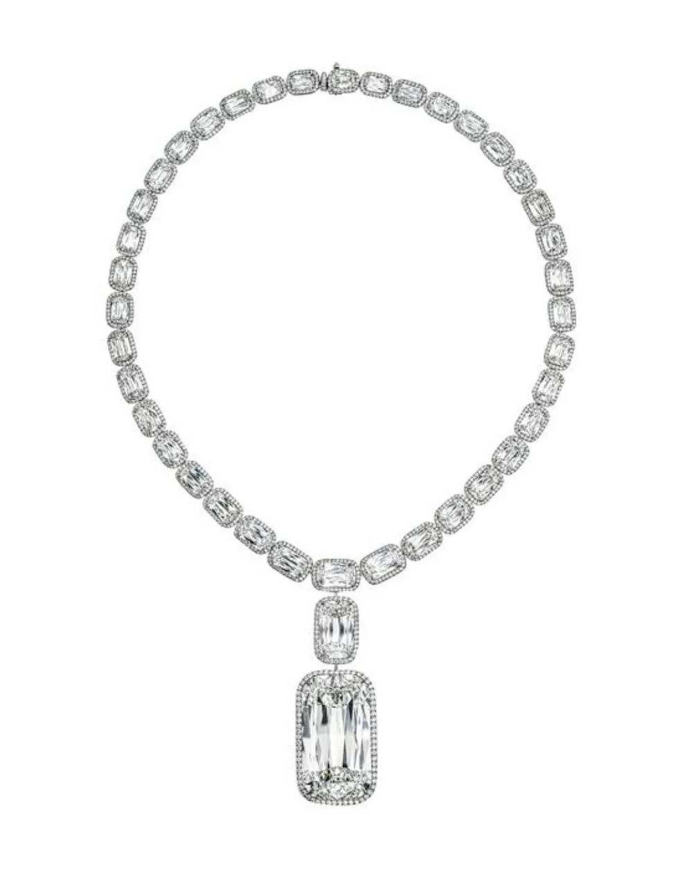 Бриллиантовое колье с кулоном с бриллиантом огранки Ашока весом 48 карат: