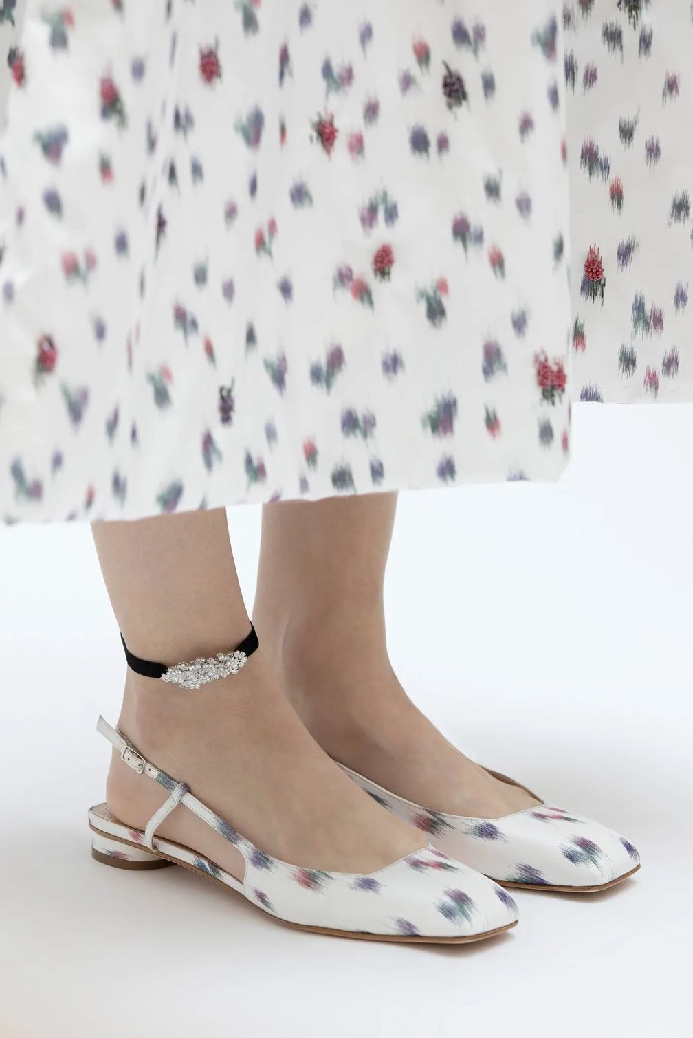 Во время июньской презентации высокого ювелирного искусства Dior модель, спускавшаяся по лестнице виллы Эрба на итальянском озере Комо, надела две серьги, кафф, чокер, по два кольца на каждый из указательных пальцев и, повязанный вокруг правой лодыжки, букет бриллиантовых цветов на тканевом ремешке.