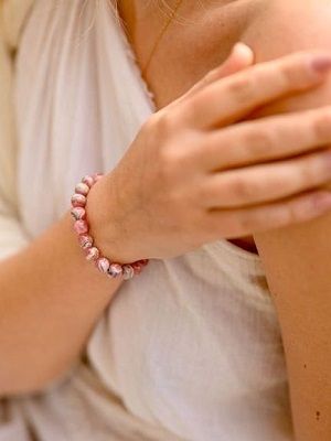 Браслет с бусинами из родохрозита по праву является универсальным аксессуаром, так как подходит большинству женщин. Он одновременно удачно смотрится как на молодых девушках, так и на дамах элегантного возраста.