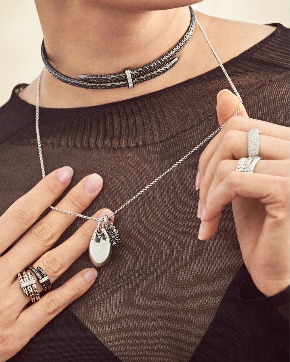 «В основном это было связано с ремеслом и техникой, — сказал Кракофф о коллекциях Харди, добавив, что это был обширный ассортимент, который нуждался в некоторой доработке. — Было много однообразия. Поэтому, начав работать над новыми коллекциями, я подумал: “Как бы все это свести к ясным, чистым, четким идеям, которые отличаются друг от друга, но в то же время отражают идею John Hardy?”»