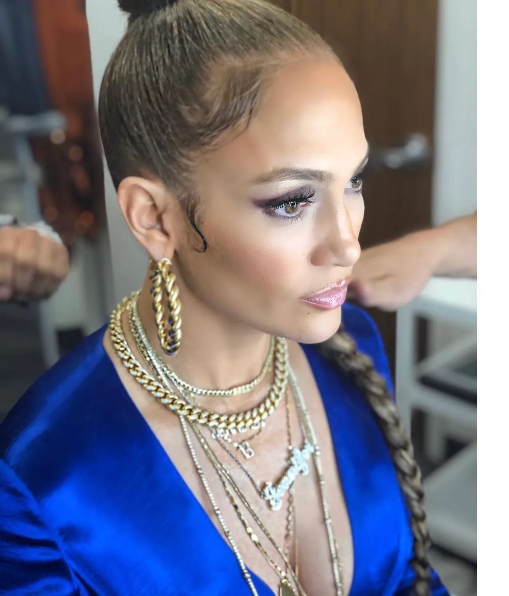 Дженнифер Лопес надела несколько ожерелий, включая бриллиантовое колье Le Vian Chocolate, во время съемок шоу NBC Word of Dance в октябре 2018 года (@robzangardi):