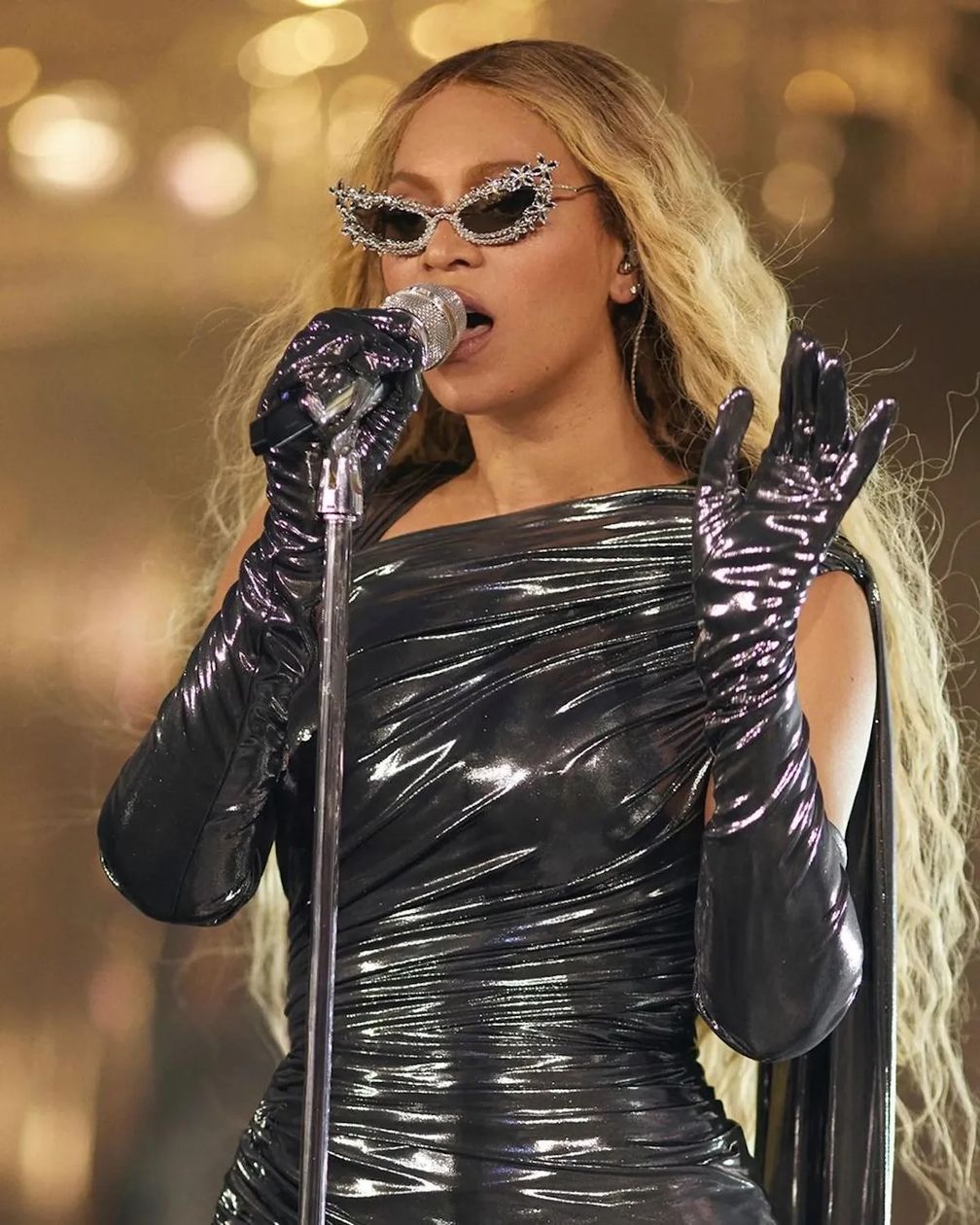 Представьте, что вы пытаетесь бороться с блеском природных бриллиантов с помощью бриллиантовых солнцезащитных очков! Бейонсе появилась на сцене именно так, надев изготовленные на заказ солнцезащитные очки Tiffany Victoria diamond.