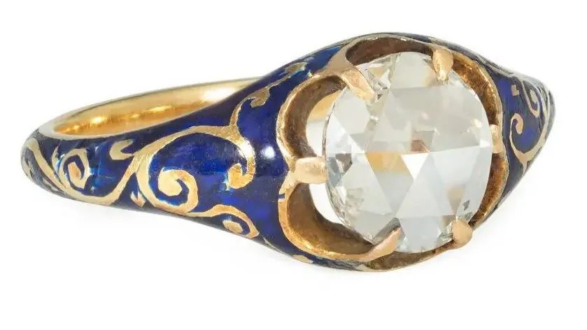 Помолвочные кольца с бриллиантами той эпохи были невероятно богато украшенными, но при этом невесомыми на вид, с дизайном, который, как отмечает ювелирный дизайнер Эмили Кувин, «отражал положение женщины в обществе; несколько изящный и ненавязчивый, но декоративный».