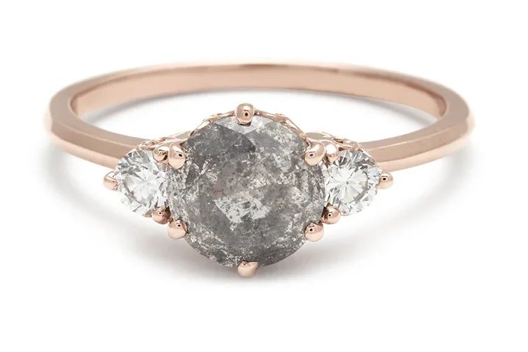 Цветные драгоценные камни, такие как изящные бриллианты цвета шампань, бриллианты цвета «соль и перец» и серые бриллианты, завоевали популярность как более уникальные варианты центральных камней.